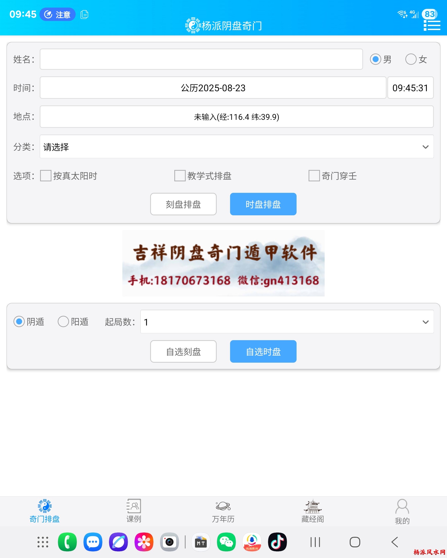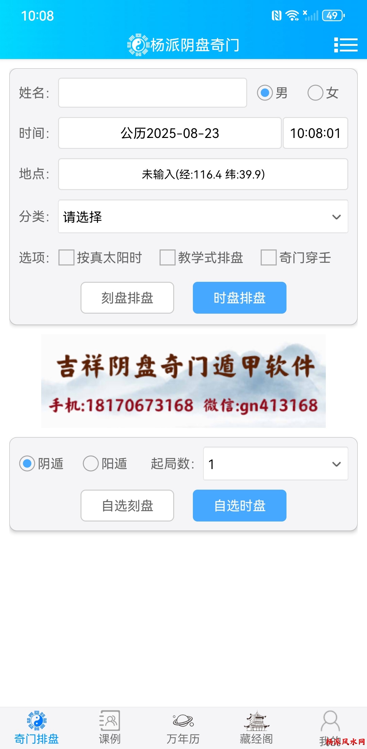 杨派阴盘奇门遁甲排盘软件